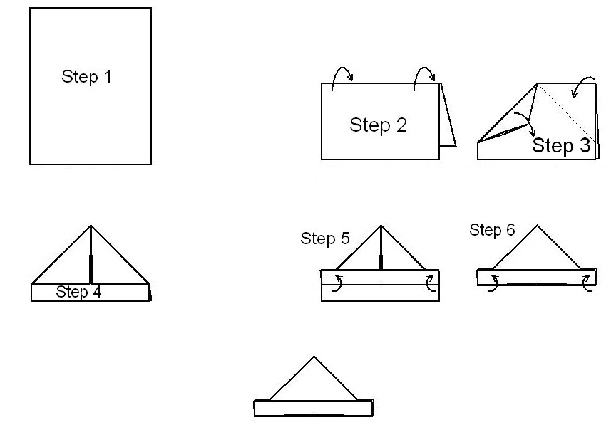 Instrucciones textuales paso a paso para el gorro, construir a escala reducida un gorro de papel, solo por si no sabes